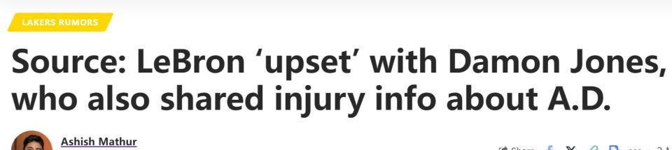 消息人士表示,詹姆斯与琼斯是亲密好友,但他此前完全不知道,琼斯在2022-23赛季曾将关于他的非公开信息透露给赌徒。